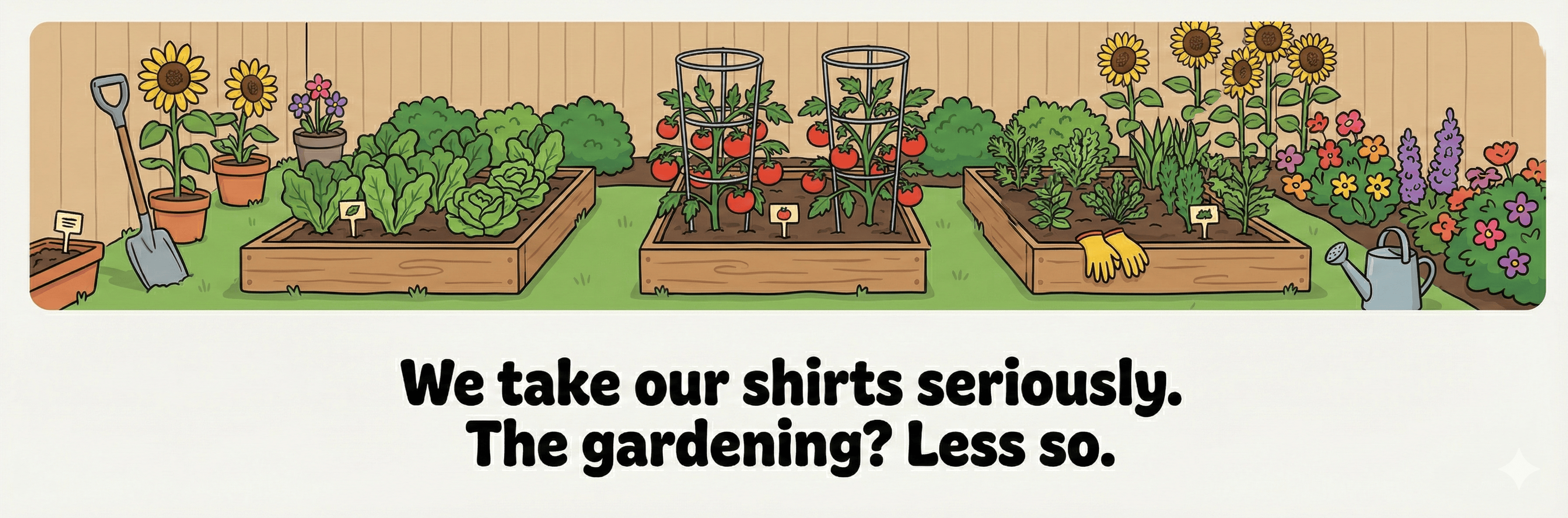 Made from 100% combed and ring-spun cotton because if you're going to spend all day bent over a garden bed, you might as well be comfortable doing it. This unisex shirt has that lived-in, "I've been pulling weeds since dawn" feel right out of the package (we won't tell). Premium, quality material with a retail fit that runs true to size - because nothing says "serious gardener" like a shirt that actually holds up to thorns, soil, and the occasional rogue cucumber vine. Side-seamed construction, pre-shrunk fabric, and shoulder-to-shoulder taping for durability that lasts longer than your spring tomatoes.